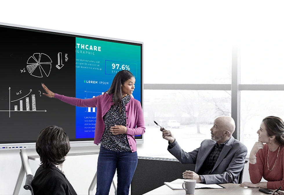 L'écran plat 4K UHD de 116 pouces redéfinit la collaboration en équipe en remplaçant les équipements encombrants par une solution unique et intégrée, favorisant une communication plus efficace.